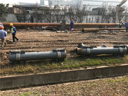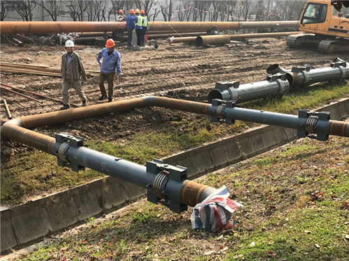 2017-11月上海金山化工區(qū)污水管道補(bǔ)償器安裝現(xiàn)場(chǎng): 現(xiàn)場(chǎng)工人忙碌的身影 初步補(bǔ)償器管道正在連接中 現(xiàn)場(chǎng)工人們正安裝屬于中等不銹鋼波紋管補(bǔ)償管道 上海漢麥金屬軟管制造有限公司